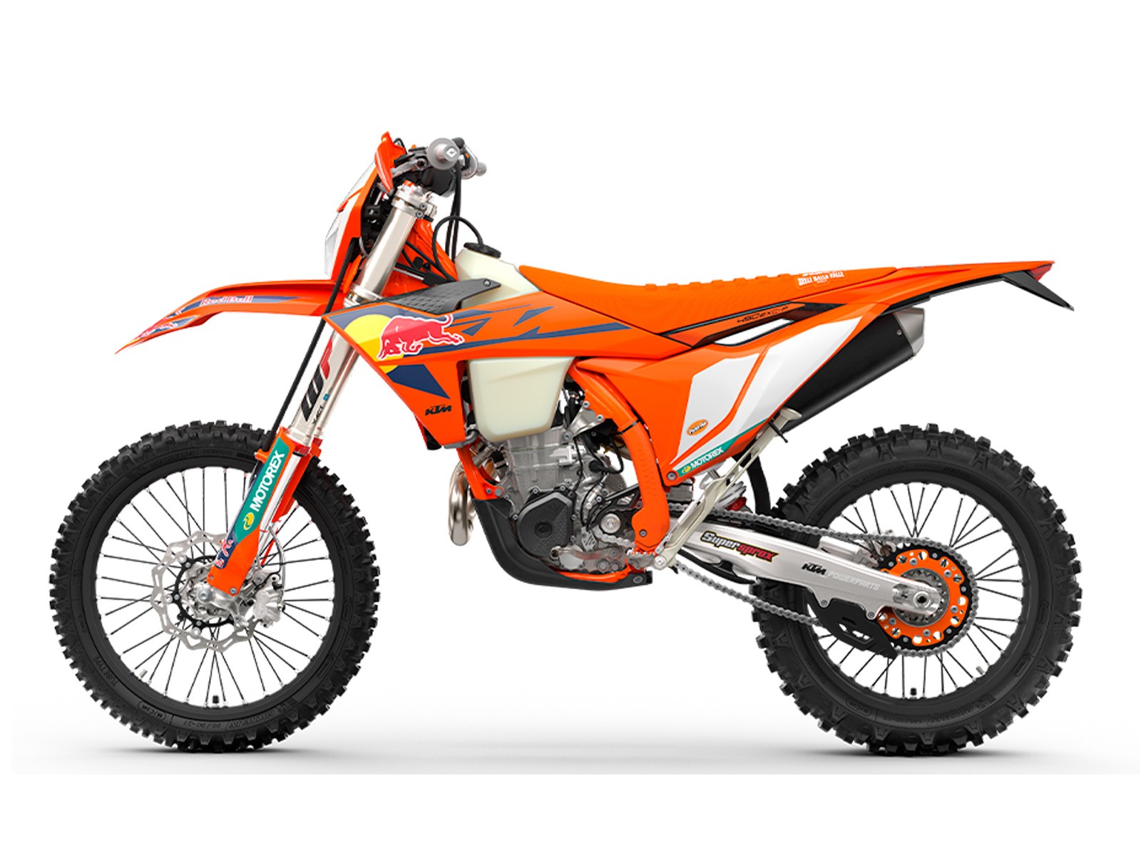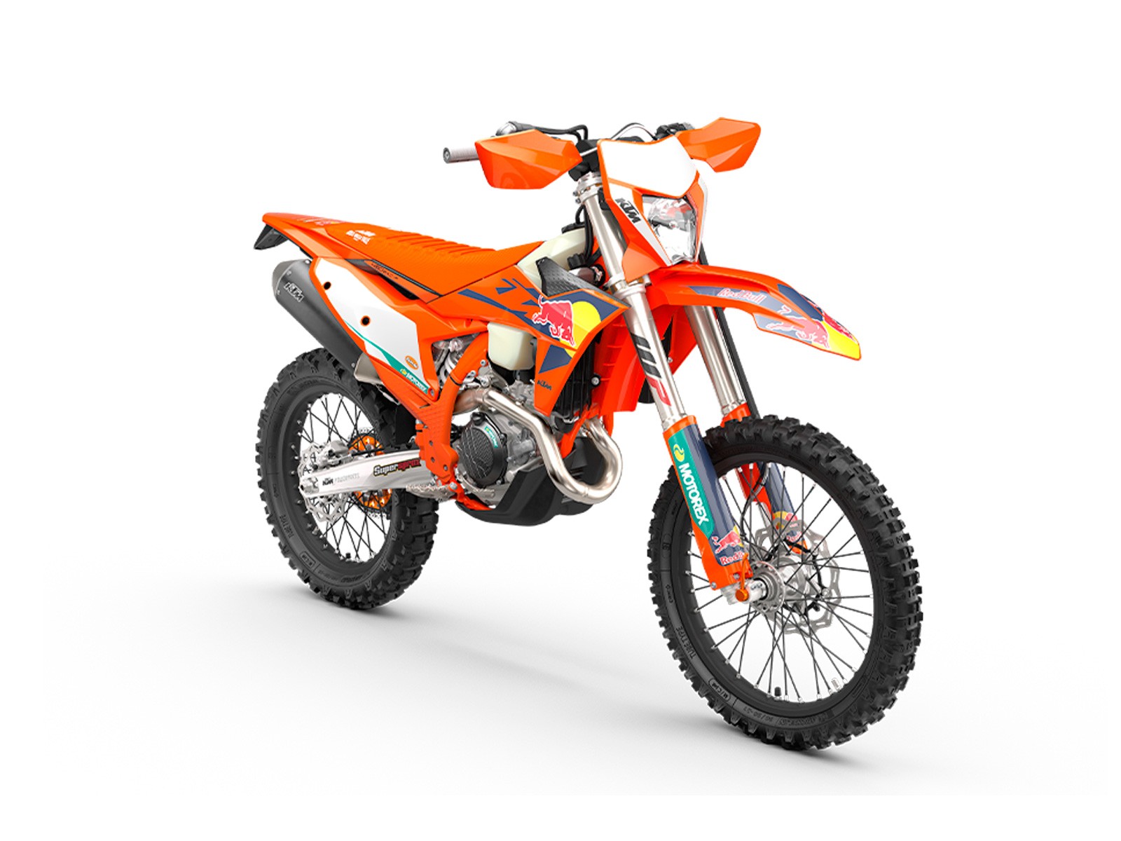 Una gran potencia, una agilidad sin igual y un par motor descomunal sitúan a esta arma de enduro ganadora de campeonatos en la punta de lanza de cualquier batalla. Con un chasis ligero, horquilla de cartucho cerrado y un completo e inteligente arsenal electrónico, la KTM 450 EXC-F CHAMPION EDITION está a punto para coronarse de nuevo. Los aspectos más destacados de las KTM EXC CHAMPIONS EDITION 2025 son: